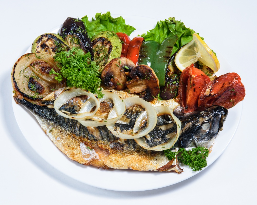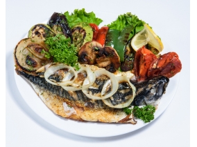 овощи, сыр моцарелла, яйцо, рыбные палочки (омук)