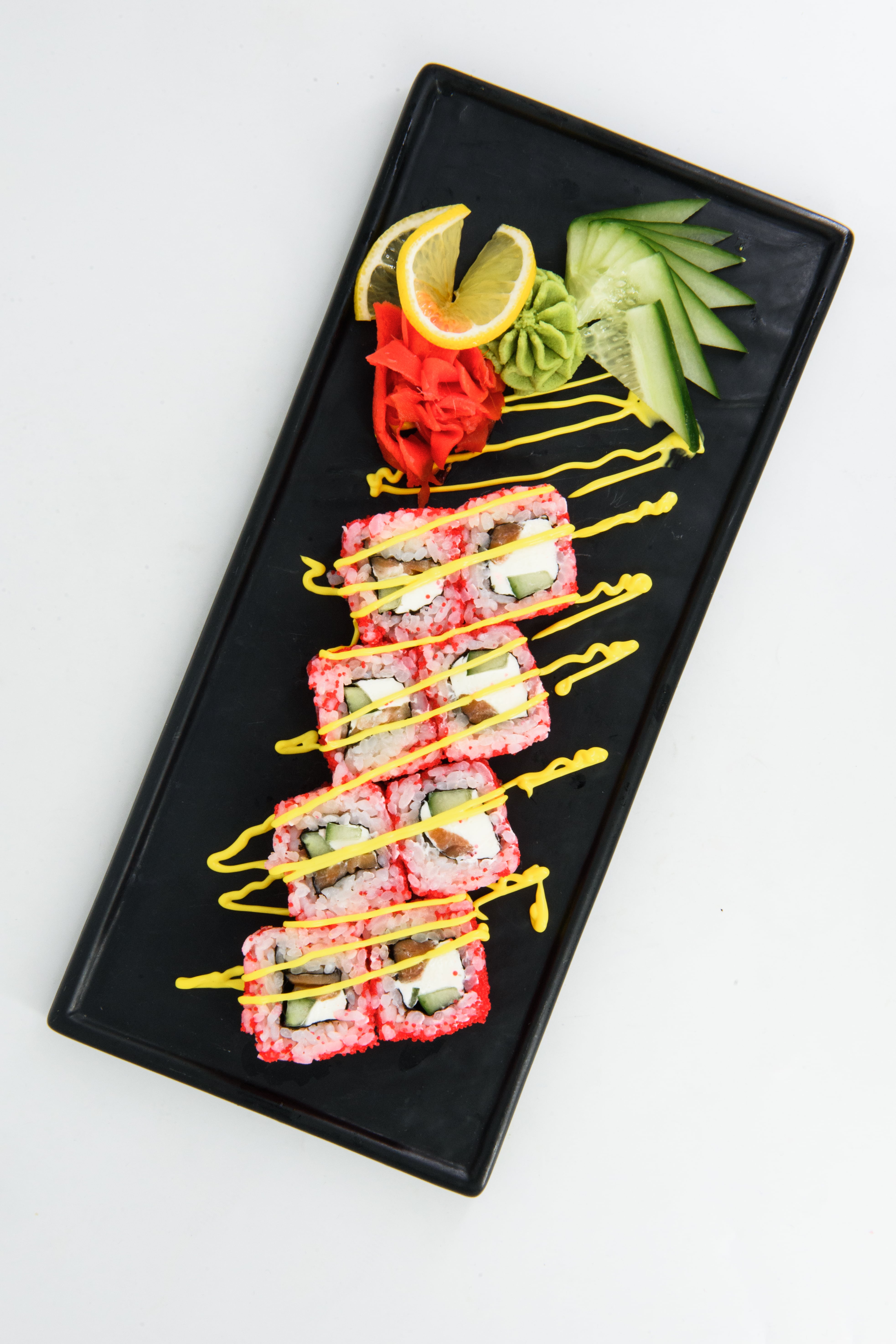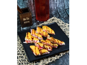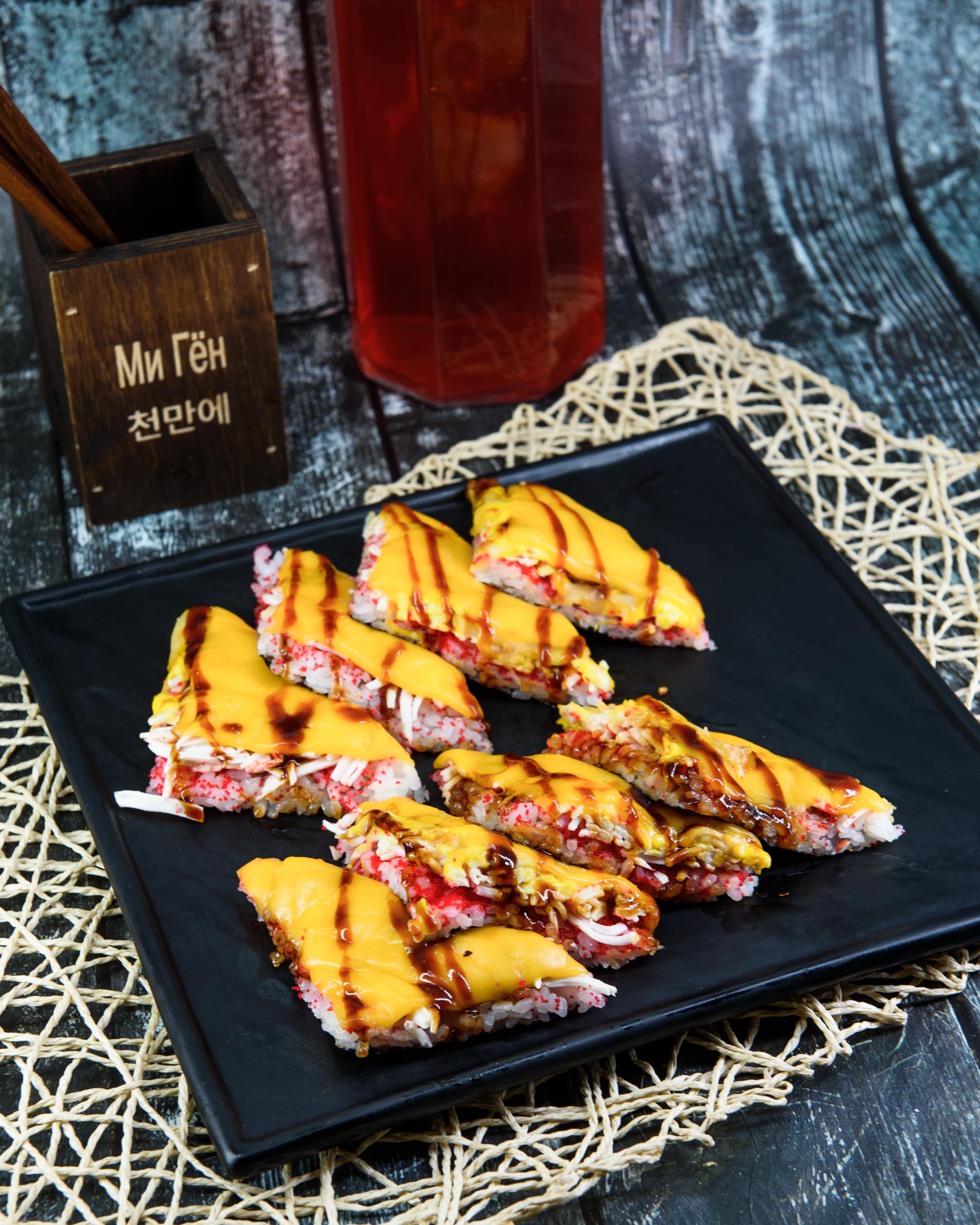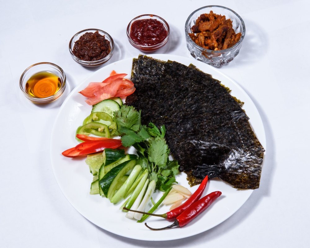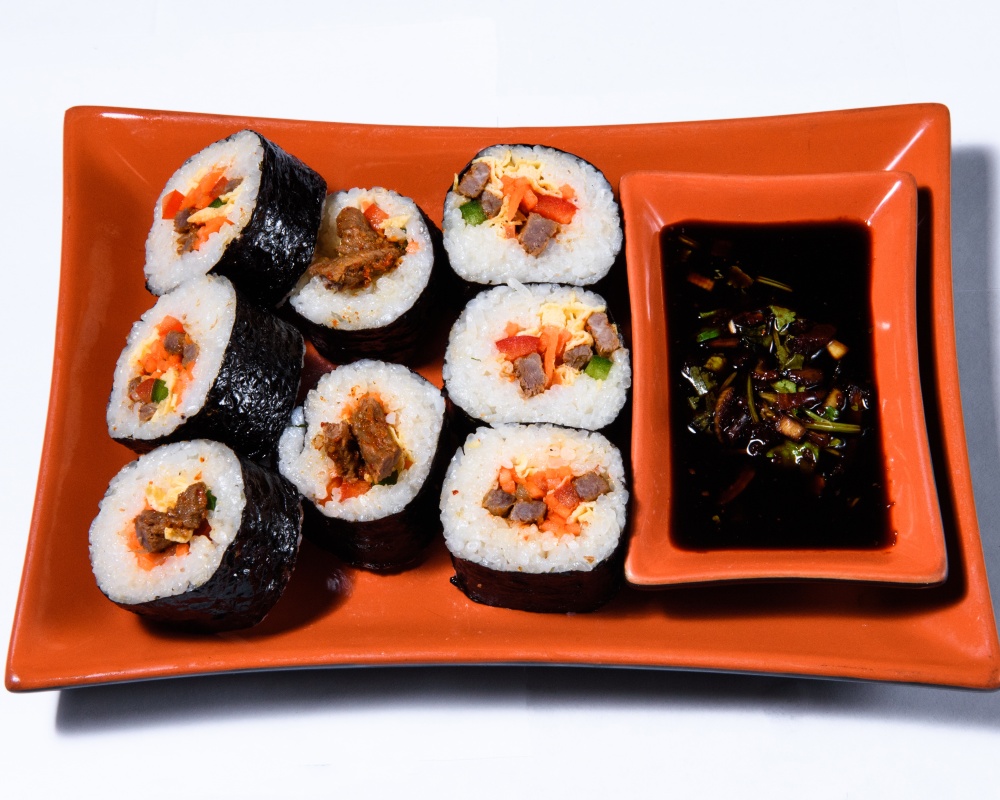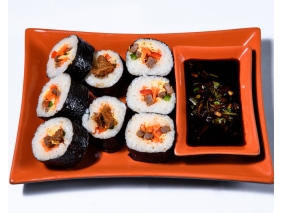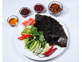 Нори, рис, говядина, сладкий перец, морковь ча, яичные блины