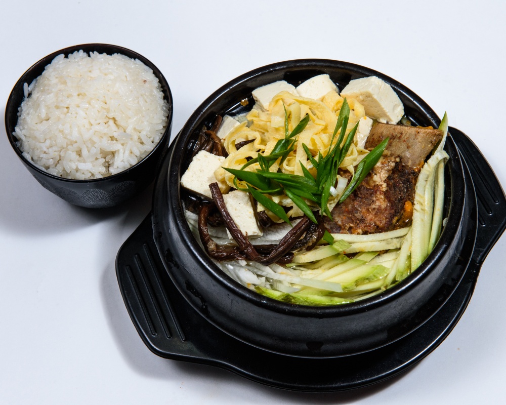 Суп из говяжьих рёбрышек, тофу, ток, папоротник, крахмальная лапша, зелень