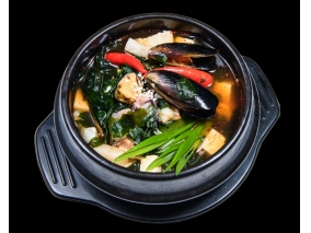 Острый суп! Морской коктейль, мидии, морская капуста, тофу, чили