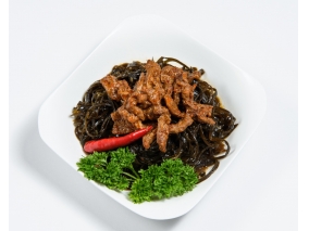 Морская капуста , микс Зелень, кусочки говядины, на гарнир рис , перцовая паста , кунжутное масло, паста Твендян